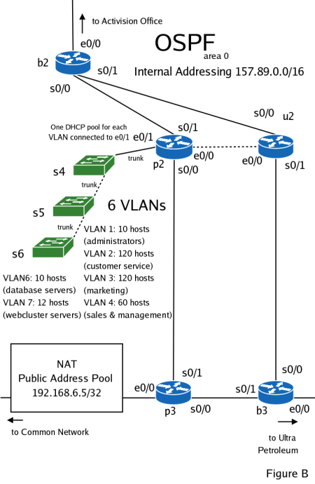 This case study consists of three parts. In the first you will need to design and implement a network for a video game company Activision and connecting their network to the ISP. The second part consists of creating a redundant network for a Californian ISP Succeed.net and connecting it to their upstream carrier. Third your task will be to configure a network for a small oil and natural gas exploration company, Ultra Petroleum and connect their network to the Succeed.net ISP. This case study is designed to test the student's proficiency in dealing with all of the most difficult concepts taught in the CCNA curriculum. Not for the weak hearted.