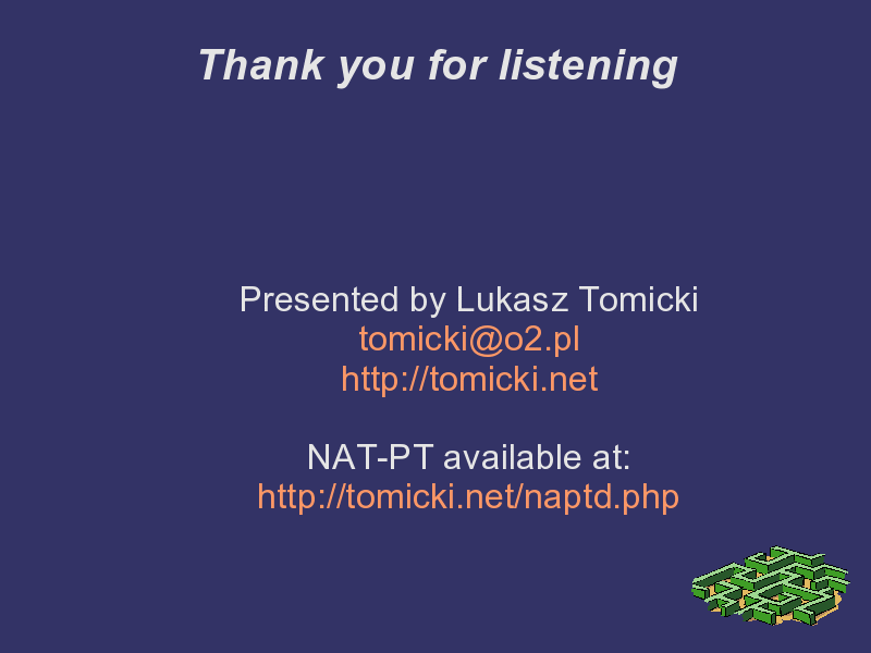 NAT-PT has been developed for the GNU/Linux operating and is available at no charge. It is distributed on the terms of the GNU GENERAL PUBLIC LICENSE as published by the Free Software Foundation.